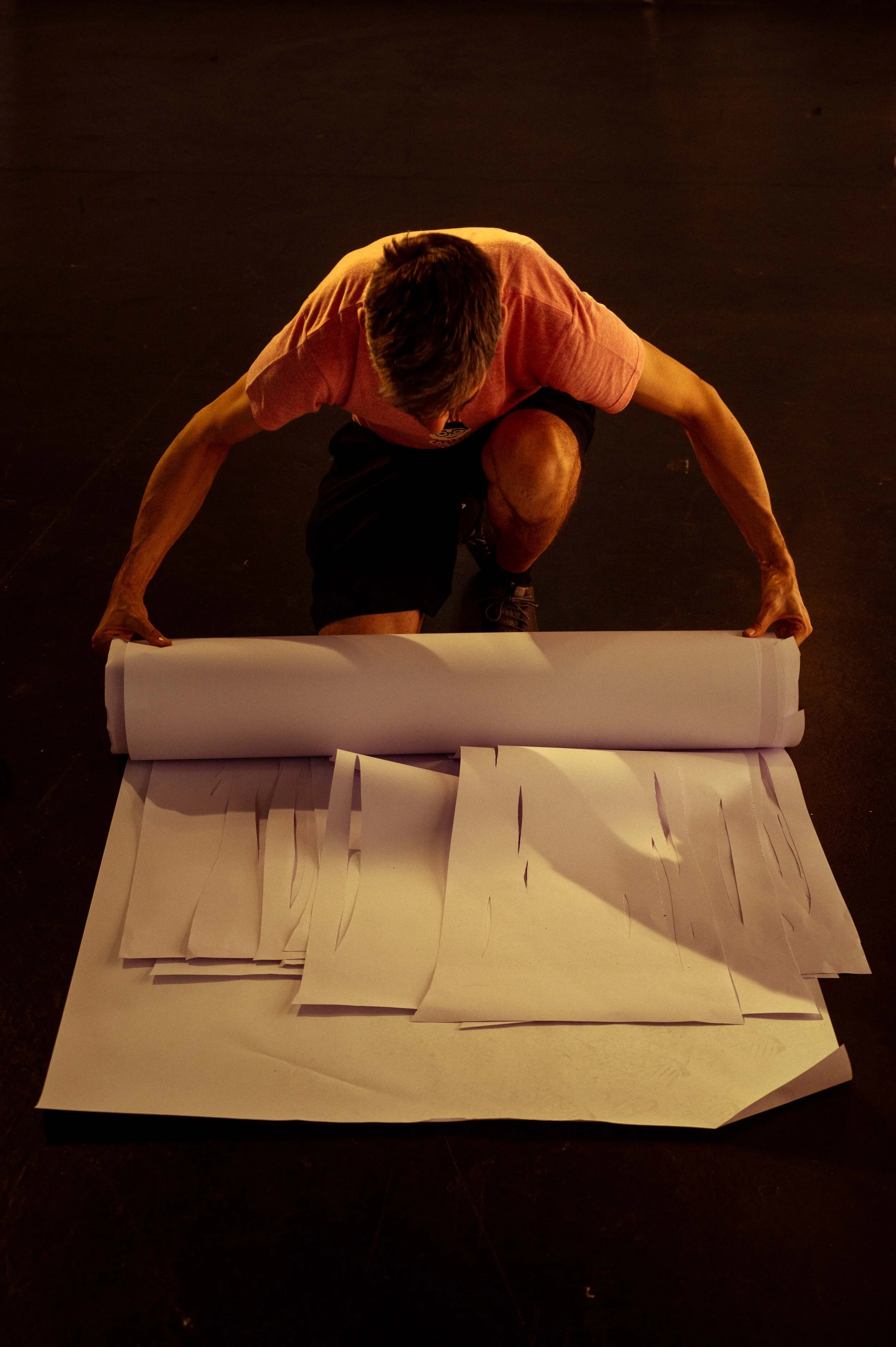 The set designer unrolls additional layers.